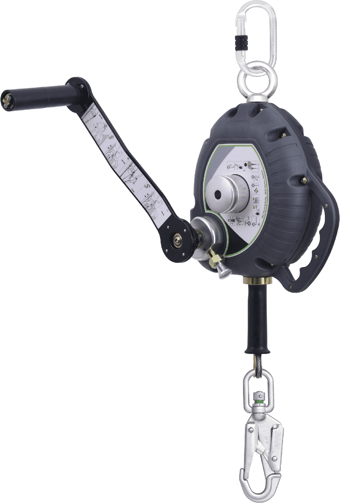 KALYPSO (C) – Anticaída retráctil de cable inoxidable de 30 m con torno de rescate integrado