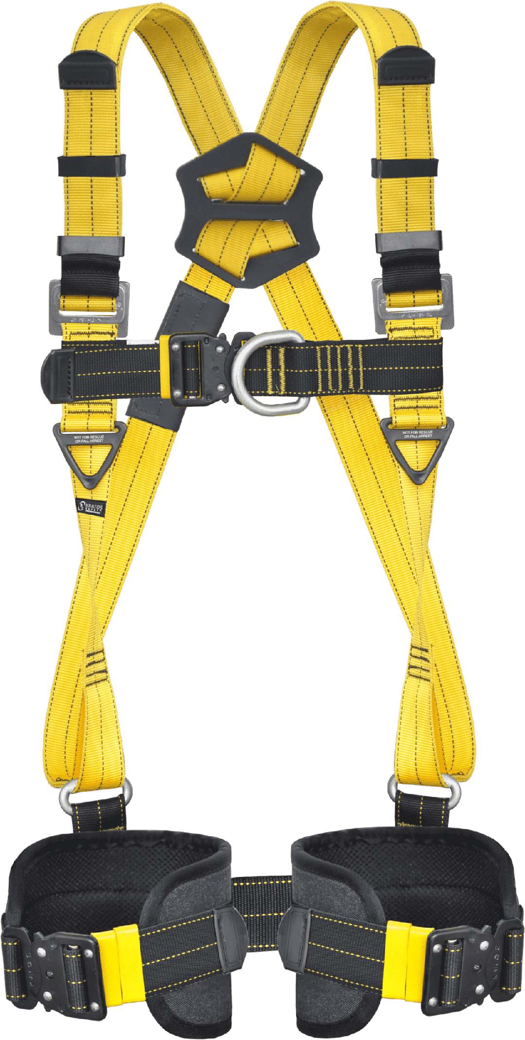 Puntos de enganche: 1 anilla en D dorsal (A), 1 anilla en D en la cinta dorsal de extensión (A) et 1 anilla en D esternal (A) para sistema anticaída; 1 anilla en D en cada hombro para el rescate.